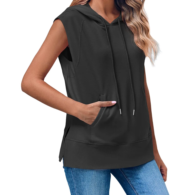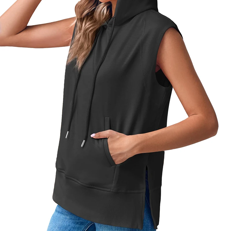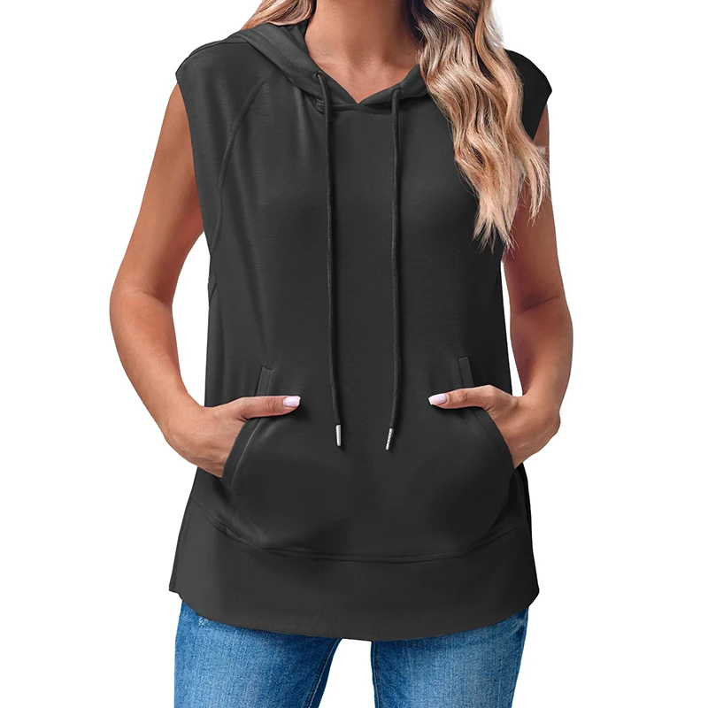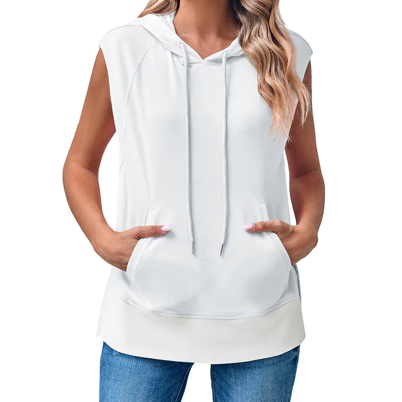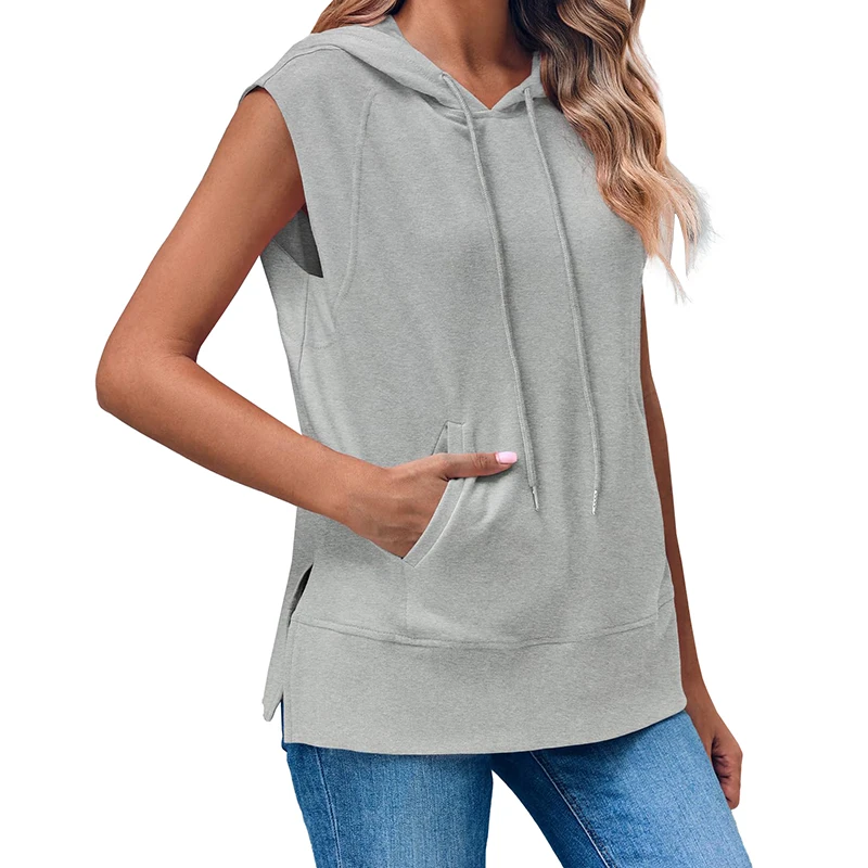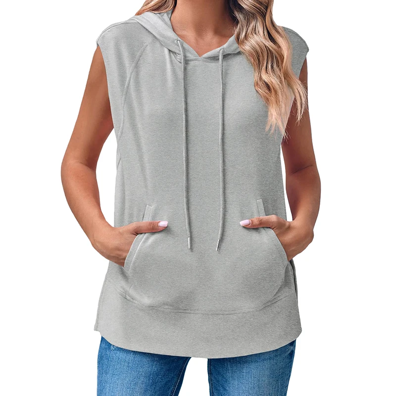 DT1144 Sleeveless Hoodie Summer Drawstring Hooded Sweatshirt