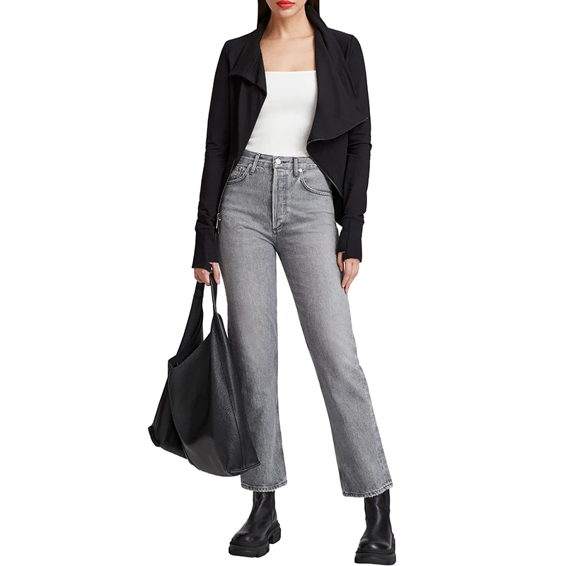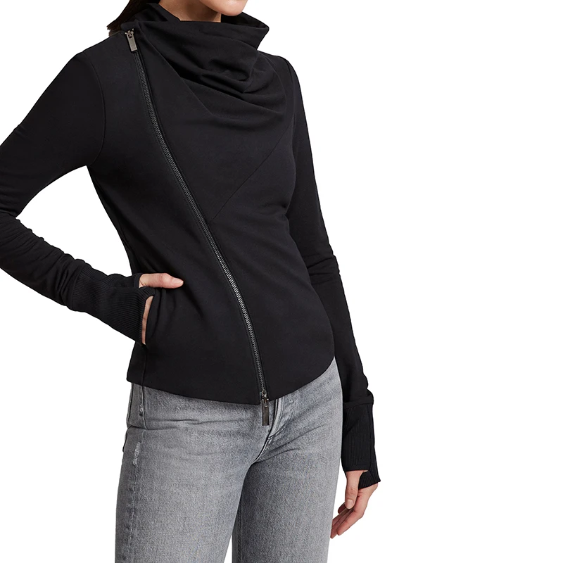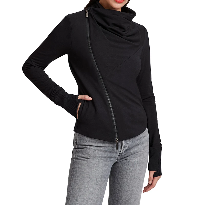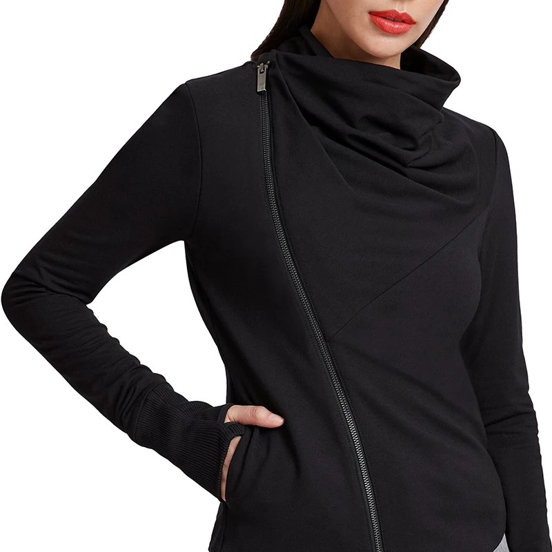 DT1117 Custom High Cowl Neck Sweatshirts Asymmetric Zipper Jacket