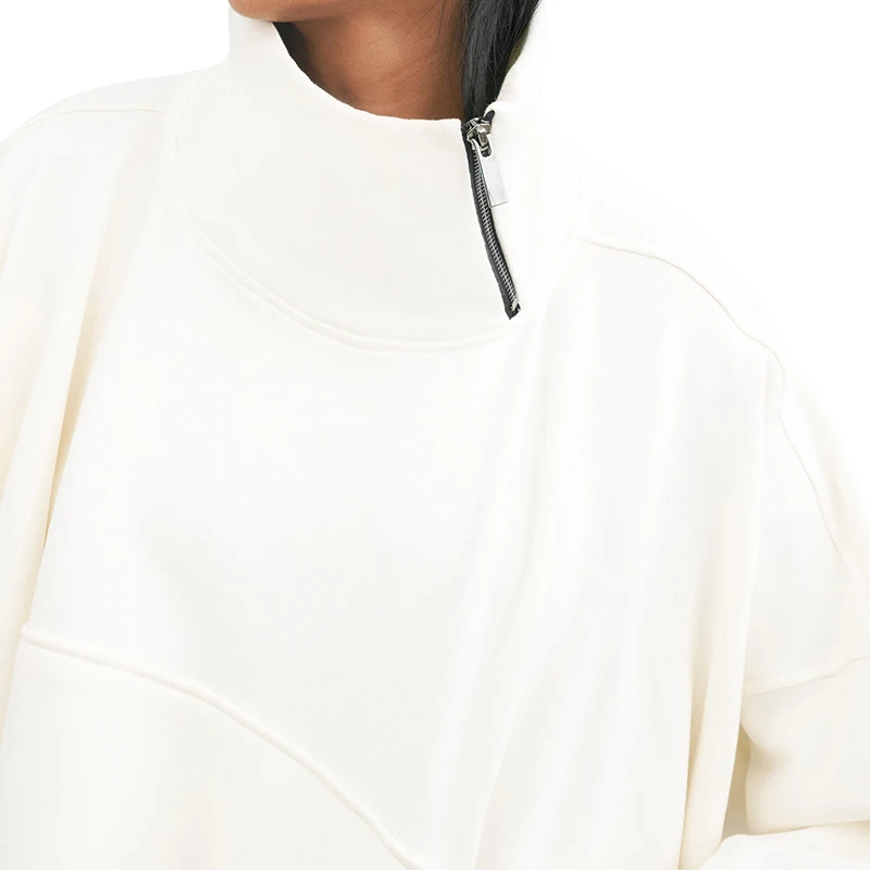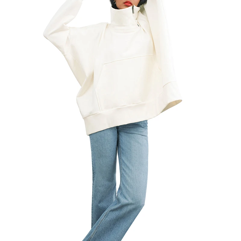 DT1111 Zip High Neck Thumbhole Long Sleeve Sweatshirt With Pocket