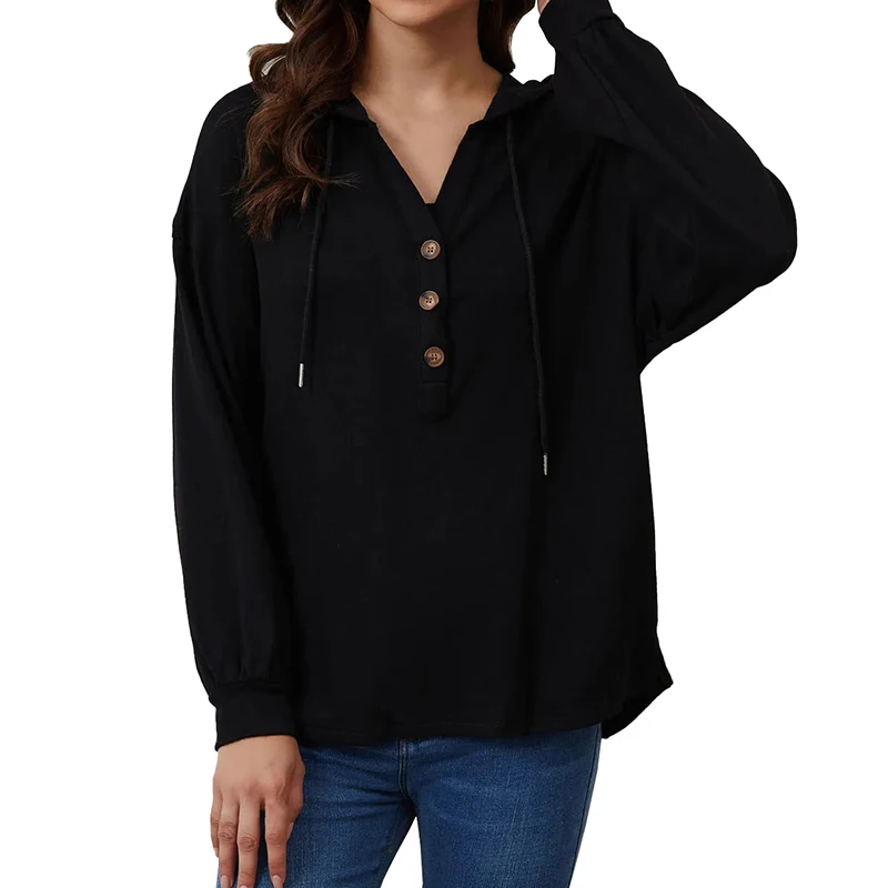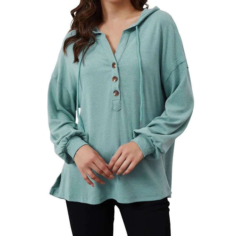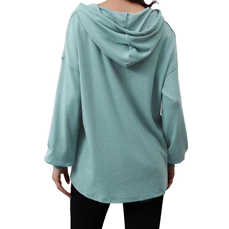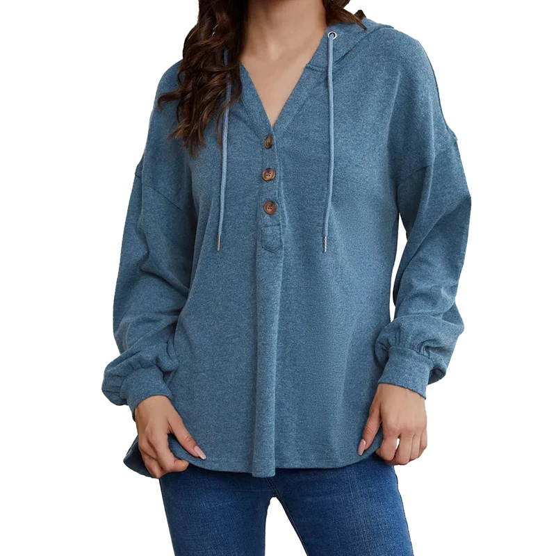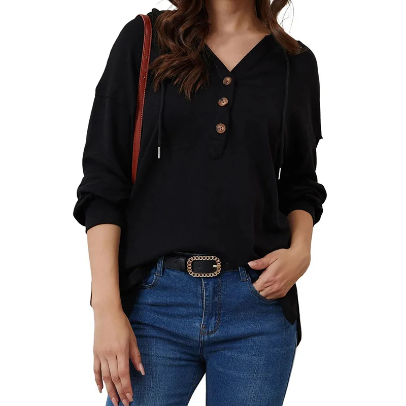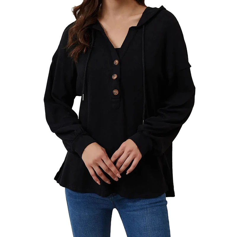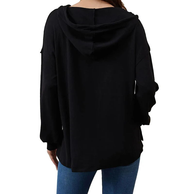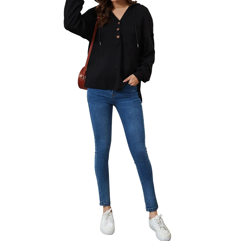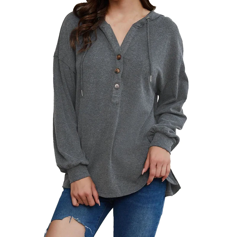 DT1077 Custom Drop Shoulder Hoodies Button High Low Hem Tops