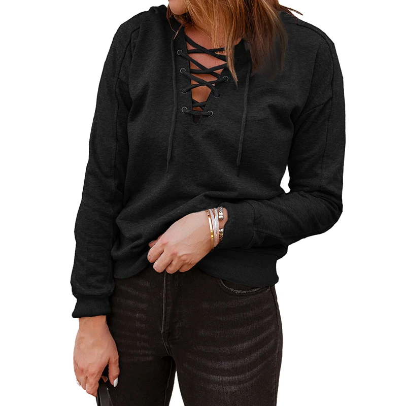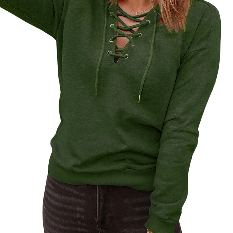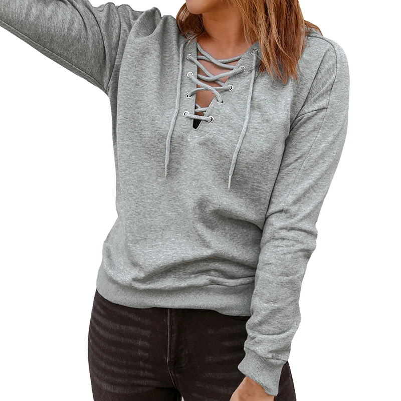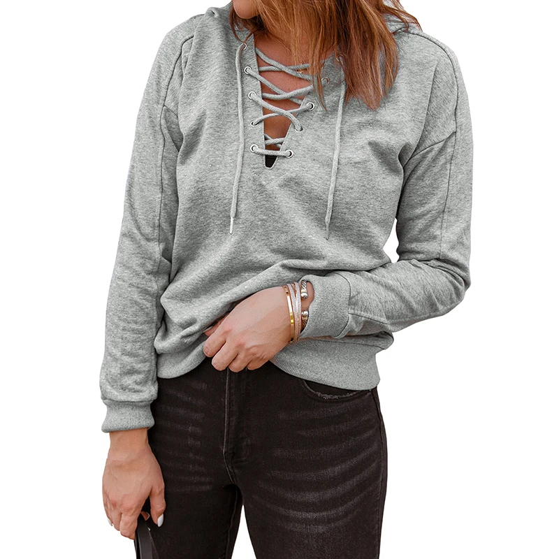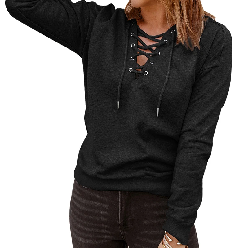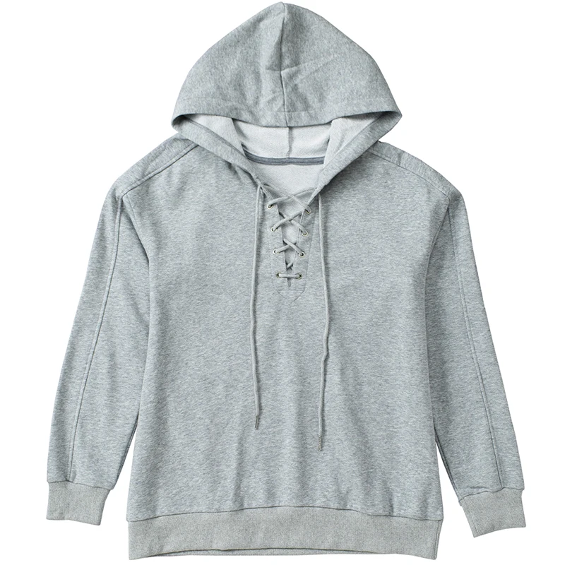 DT1071 Custom Long Sleeve Solid Color Lace up Hoodies for Women