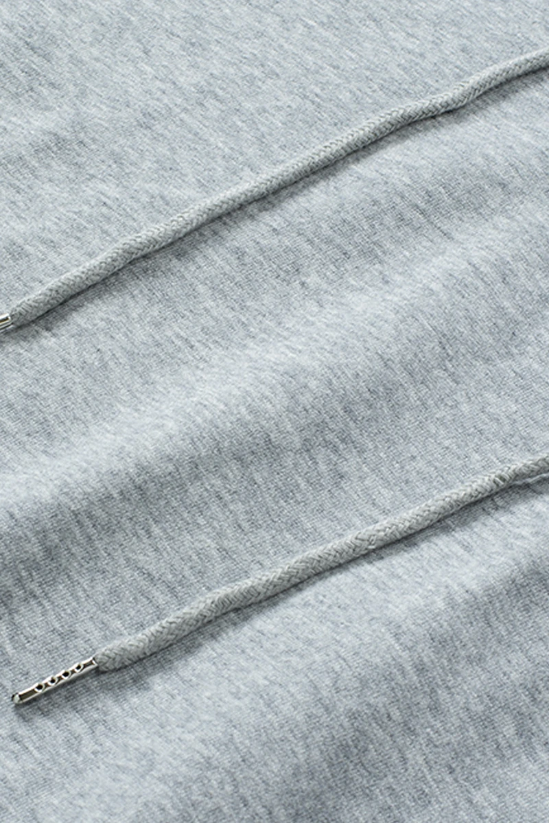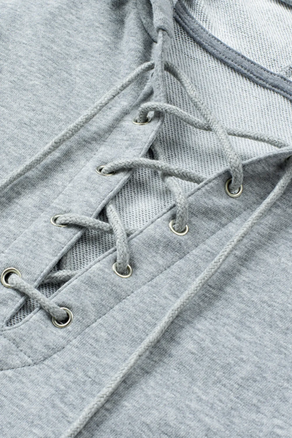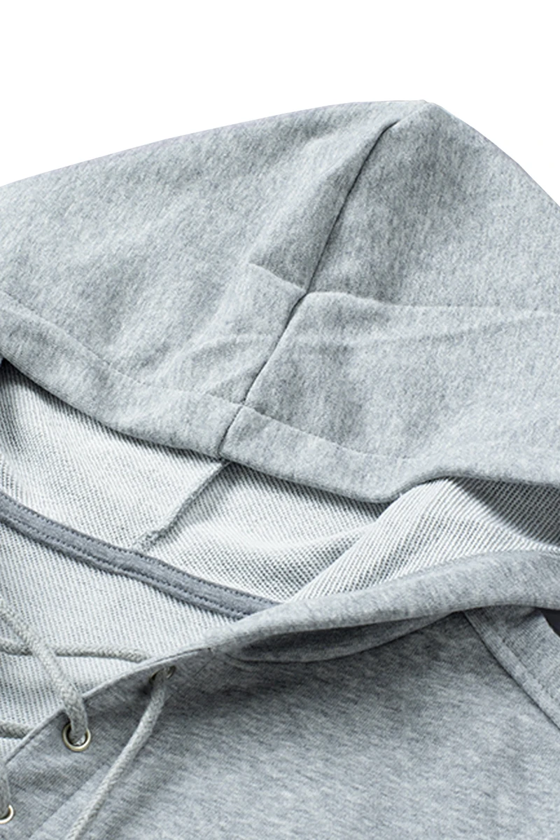 Drawstring, cross criss, hooded, long sleeve, lace-up, solid color.