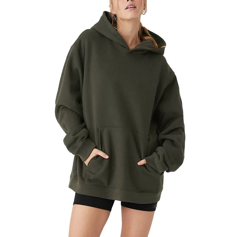LR9016 Oversized Hooded Pullover Long Sleeve Fleece Sweatshirt