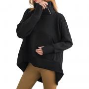 DT1111 Zip High Neck Thumbhole Long Sleeve Sweatshirt With Pocket