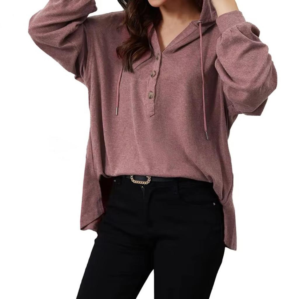 DT1077 Custom Drop Shoulder Hoodies Button High Low Hem Tops