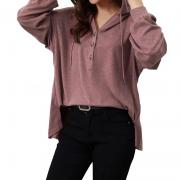 Hooded, drawstring, long sleeve, hooded, button neckline.