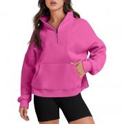 Featuring an oversized hoodie design, quarter zipper, drop shoulder collar, and long sleeves.